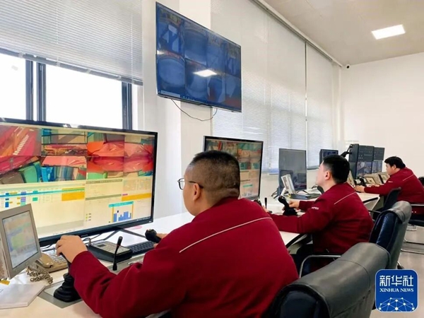 工作人员在智能调度中心远程操控场桥作业