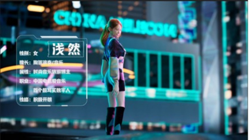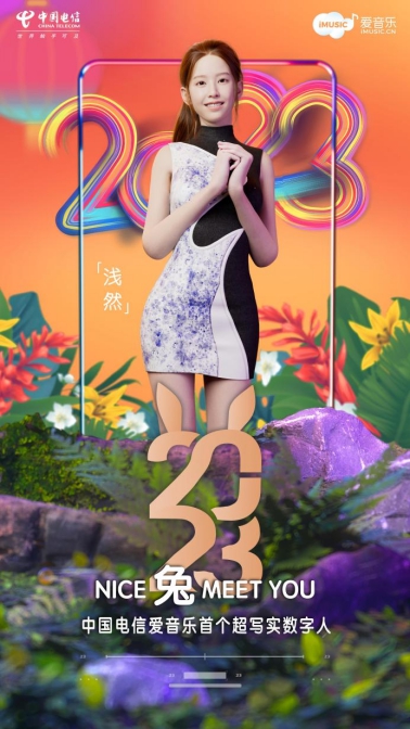 2023年2月23日,中国电信爱音乐推出首个超写实数字人——“浅然”,并担任爱音乐数智化代言人。“浅然”由中国电信爱音乐AI新视界内容创作中心出品,作为音乐圈新人,以清新甜美的形象和音乐才华全新亮相。