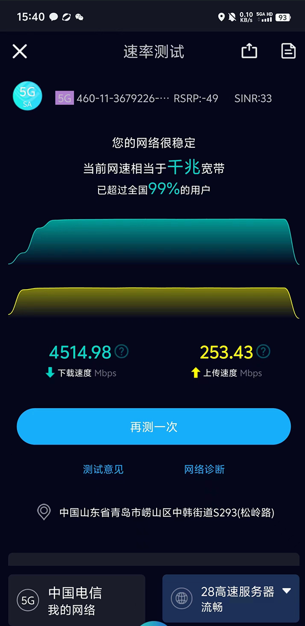 图2:青岛科技大学5G-A测试截图(speedtest)