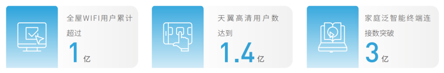 中国电信依托云网融合能力,升级数字家庭产品体系,满足用户不断升级的美好生活需求,普惠千家万户和千行百业。聚焦网络连接、家庭安防、便捷生活三大需求,为用户提供千兆高速率、全覆盖、场景化的全屋Wi-Fi家庭组网方案,解决速率低、覆盖差、组网难等问题。打造天翼高清数字娱乐中心,提供包括优质视频、教育、游戏在内的大屏收视体验。全面升级全屋智能产品和云存储产品,围绕家庭安全、适老养老、家电控制、数字资产等场景,推出各类智能家居产品和全屋定制解决方案。