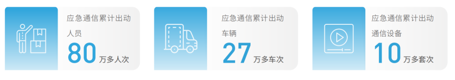 中国电信忠实履行保障通信安全畅通的使命,全力抗击地震、台风、洪涝、山体滑坡等自然灾害,保障重大活 动。完成泸定6.8级抗震救灾通信保障。完成浙江、福建、辽宁、广东、广西、甘肃等省份防汛防台救灾保障。聚焦重点区域、协同联动全网,统筹线上线下,圆满完成北京冬奥会、中国共产党第二十次全国代表大会等11项重大 活动通信保障工作。2022年,应急通信累计出动人员80万多人次、车辆27万多车次、通信设备10万多套次。