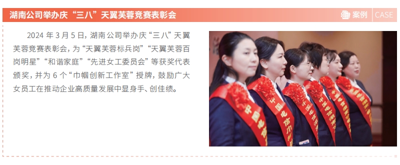 中国电信依法保护员工权益,打造全方位员工关爱体系,持续健全制度保障,为员工打造专业发展通道,携手共创员工之家。