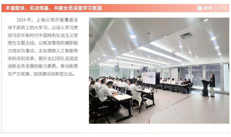 开展全员大学习。重点开展人工智能学习,全公司线上线下培训覆盖超过 160 万人次。分层分级规模化培养技能人才,重点培养产业数字化、研发、云网方向三支工程师队伍,开展涵盖各专业条线 50 个专业的技能认证考试,覆盖 47 万人次,进一步推动技能人才向卓越工程师转型。