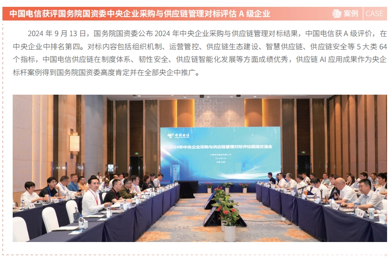中国电信持续推进供应商管理体系建设,修订印发《中国电信集团供应商管理办法》《中国电信集团供应商不良行为管理办法》,面向全部供应商开展不良行为管理,采用正向激励和负面惩戒相结合的方式,深化与优质供应商长期稳定合作,优化不良行为管理机制,积极携手供应商共同打造负责任供应链。