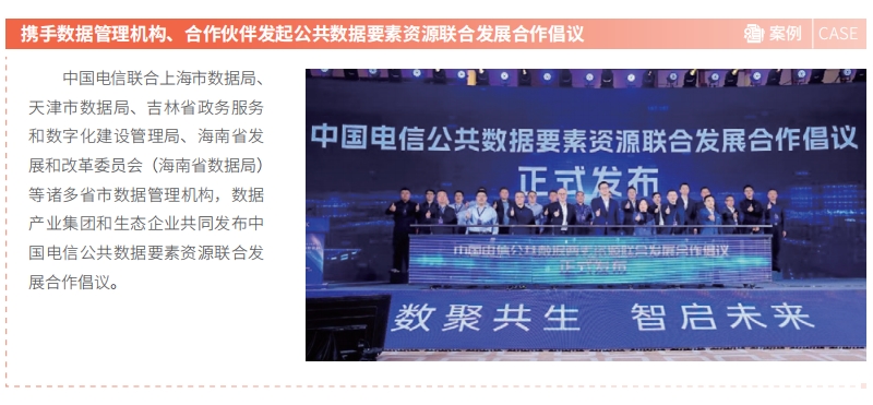中国电信以“数聚共生 智启未来”为主题举办数据要素合作论坛,展示数据要素应用成果,探索数据要素创新实践。持续打造数据要素服务能力体系,升级发布“星海”大数据品牌体系,打造数据要素平台,深化数据场景服务,赋能公共数据要素运营、企业数据要素治理和跨境数据流动的多方位建设。持续丰富“星海”大数据品牌集团级产品,在公共数据运营卡位上,实现从“海南的 1,到全国的 36(7 省、29 地市)”,全国市场占有率第一;在数据智能中台推广上,服务政府、央企等客户 150 余个。