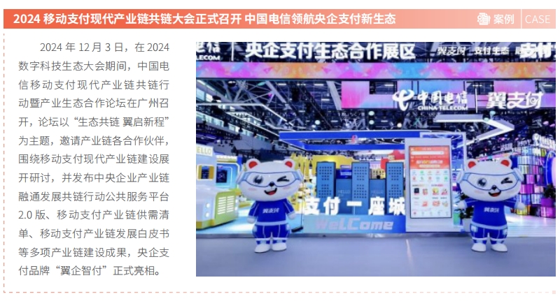 中国电信发布“昆仑”云网能力开放平台、“息壤”一体化智算平台升级及应用、“星辰”大模型升级及应用、“星海”大数据升级及应用、天翼 AI 手机、“天衍”量子计算机升级及应用等六项科技创新成果,并与国务院国资委、相关央企、产业合作伙伴共同启动中国电信移动支付现代产业链共链行动。