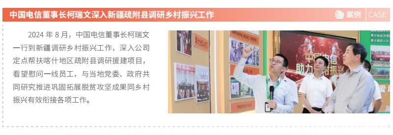 中国电信长期关注当地社区建设,积极贡献自身力量,构建可持续治理框架,促进政府、企业和社会间的合作,助力当地打造更具活力、绿色发展和包容繁荣的社会环境。