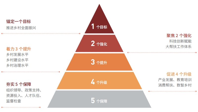 中国电信将巩固拓展脱贫攻坚成果、推进乡村全面振兴融入公司战略,学习运用“千万工程”经验,充分发挥企业信息化能力优势,有效整合帮扶资源,提出“12345”乡村振兴工作思路(见下图),为加快建设宜居宜业和美乡村、有力有效推进乡村全面振兴贡献电信力量。